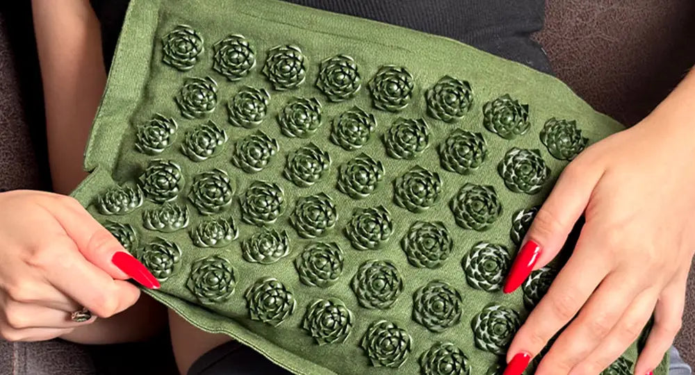 Das Akupressurkissen hilft bei Nacken- und Schulterschmerzen, Kopfschmerzen, chronischer Erschöpfung sowie Verspannungen im unteren Rücken und in den Waden.